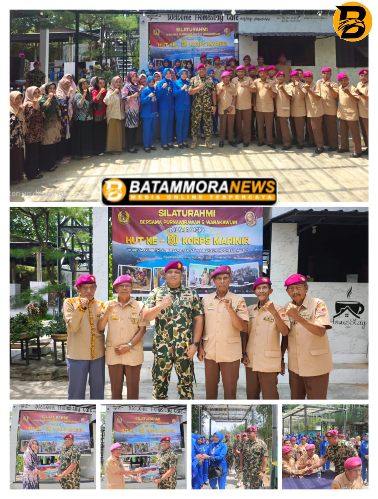 Bintan – Dalam rangka menyambut peringatan Hari Ulang Tahun (HUT) ke-80 Korps Marinir, Komandan Batalyon Marinir Pertahanan Pangkalan (Danyonmarhanlan) IV Batam, Letkol Marinir Tomas Febrianto, M.Tr.Opsla, bersama Ketua Ranting C Cabang 1 Korcab Pasmar 1, Ny. Ummi Tomas Febrianto, serta pengurus dan seluruh prajurit Yonmarhanlan IV Batam, melaksanakan kegiatan silaturahmi bersama purnawirawan dan warakawuri di Homestay Café Kijang, Bintan, Sabtu (8/11/2025).