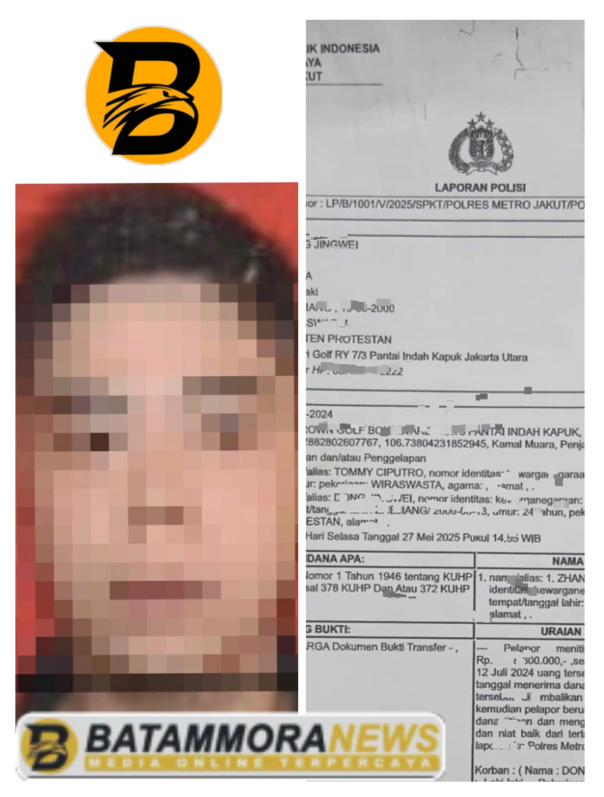 Kasus tersebut resmi dilaporkan pada 27 Mei 2025 dengan nomor laporan LP/B/1001/V/2025/SPKT/POLRES METRO JAKUT/POLDA METRO JAYA.