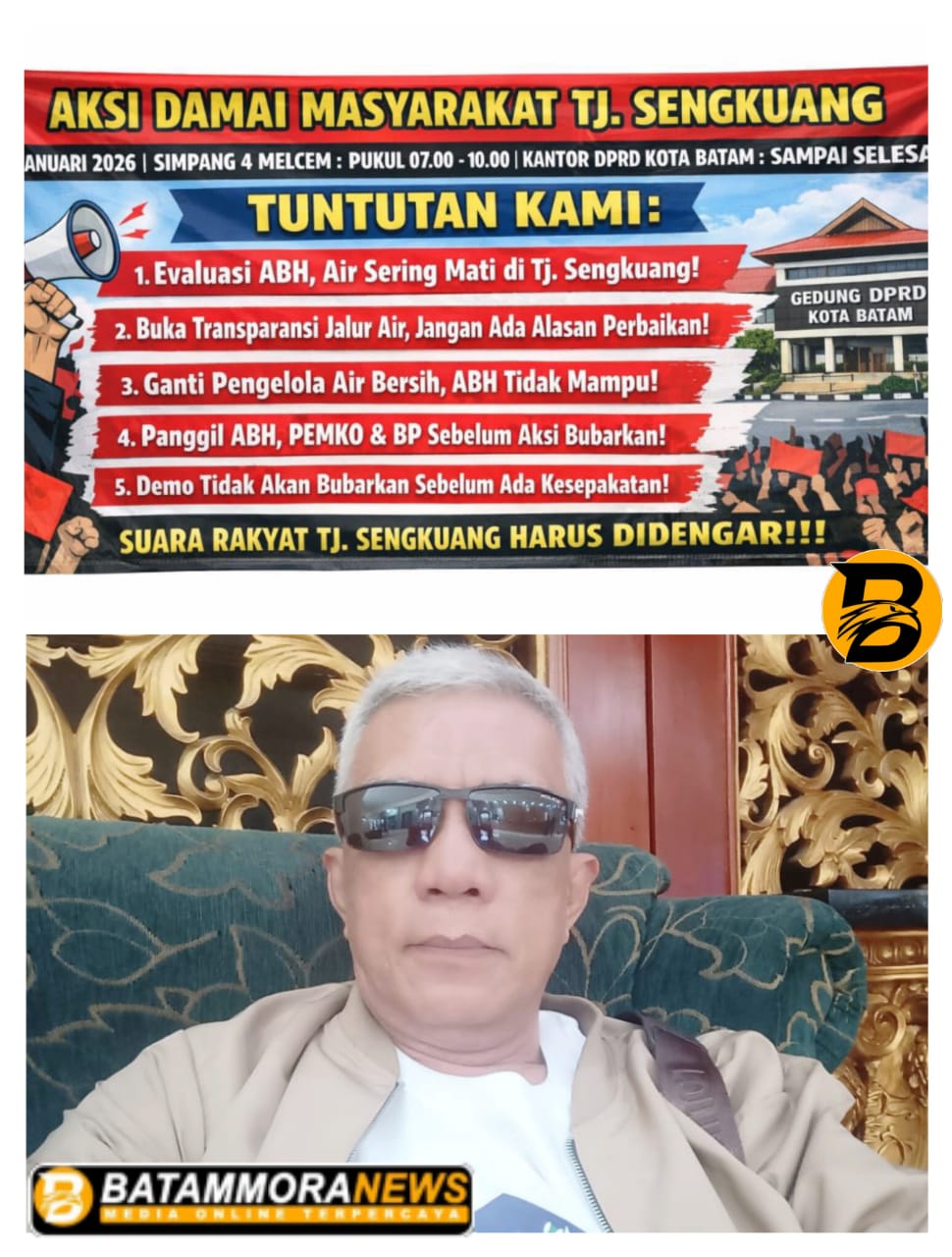Batam – Ratusan warga Kecamatan Batu Ampar, khususnya wilayah Tanjung Sengkuang, menyuarakan protes keras terkait persoalan air bersih yang kerap mati dan tidak mengalir selama berhari-hari. Kondisi tersebut dinilai sangat meresahkan masyarakat karena berdampak langsung pada kehidupan sehari-hari hingga aktivitas ekonomi warga.