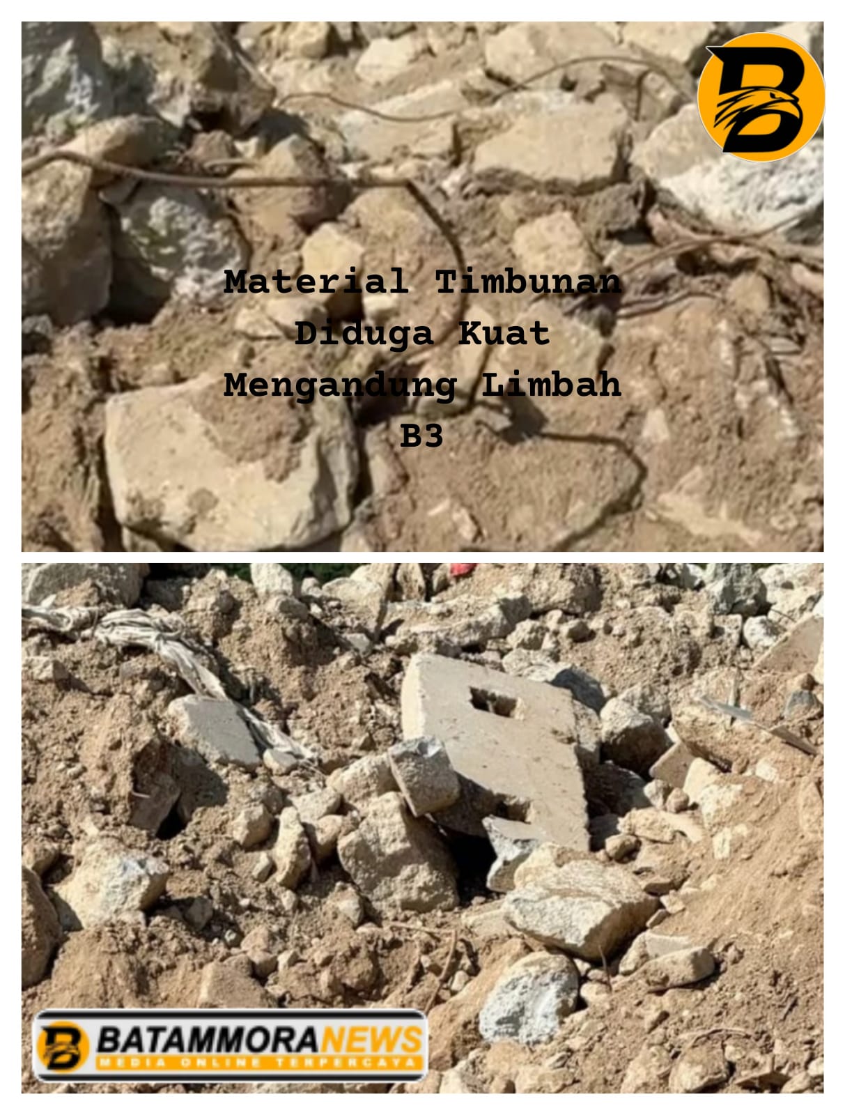 Adapun jenis limbah Tersebut yaitu berbagai jenis bongkahan bekas bangunan yang di duga kuat masuk dari Singapura dan dipergunakan untuk Reklamasi Lokasi PT KMS .