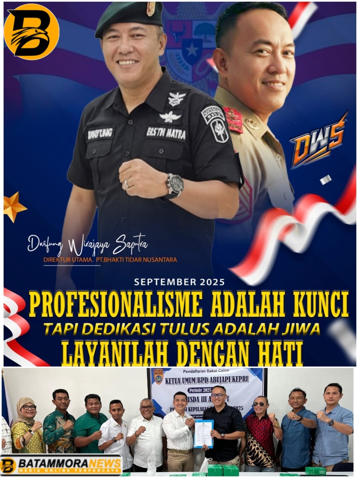 “Insya Allah, acara akan dihadiri Ketua Umum BPP Abujapi, Komjen Pol (Purn) Drs. Muhammad Sofyan Jacob, MM, Kapolda Kepri, Gubernur, Kepala BP Batam, Kapolresta, hingga Dandim. Kami juga mengundang Ketua Kadin dan Ketua Apindo sebagai mitra strategis,” pungkasnya.