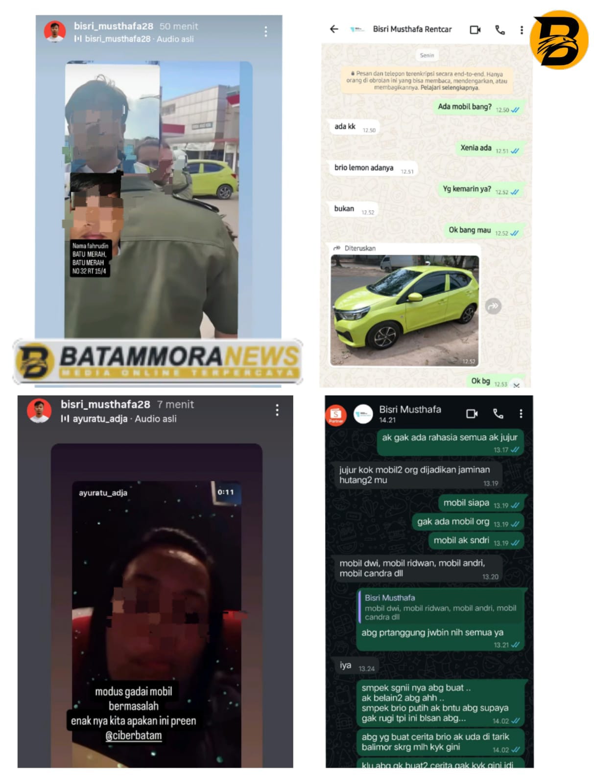 BM disebut mengisukan bahwa kendaraan milik SR, Honda Brio Lemon BP 1076 QI, ditarik oleh leasing Balimor. Namun menurut SR, fakta yang terungkap justru mobil tersebut sedang direntalkan oleh BM sendiri.