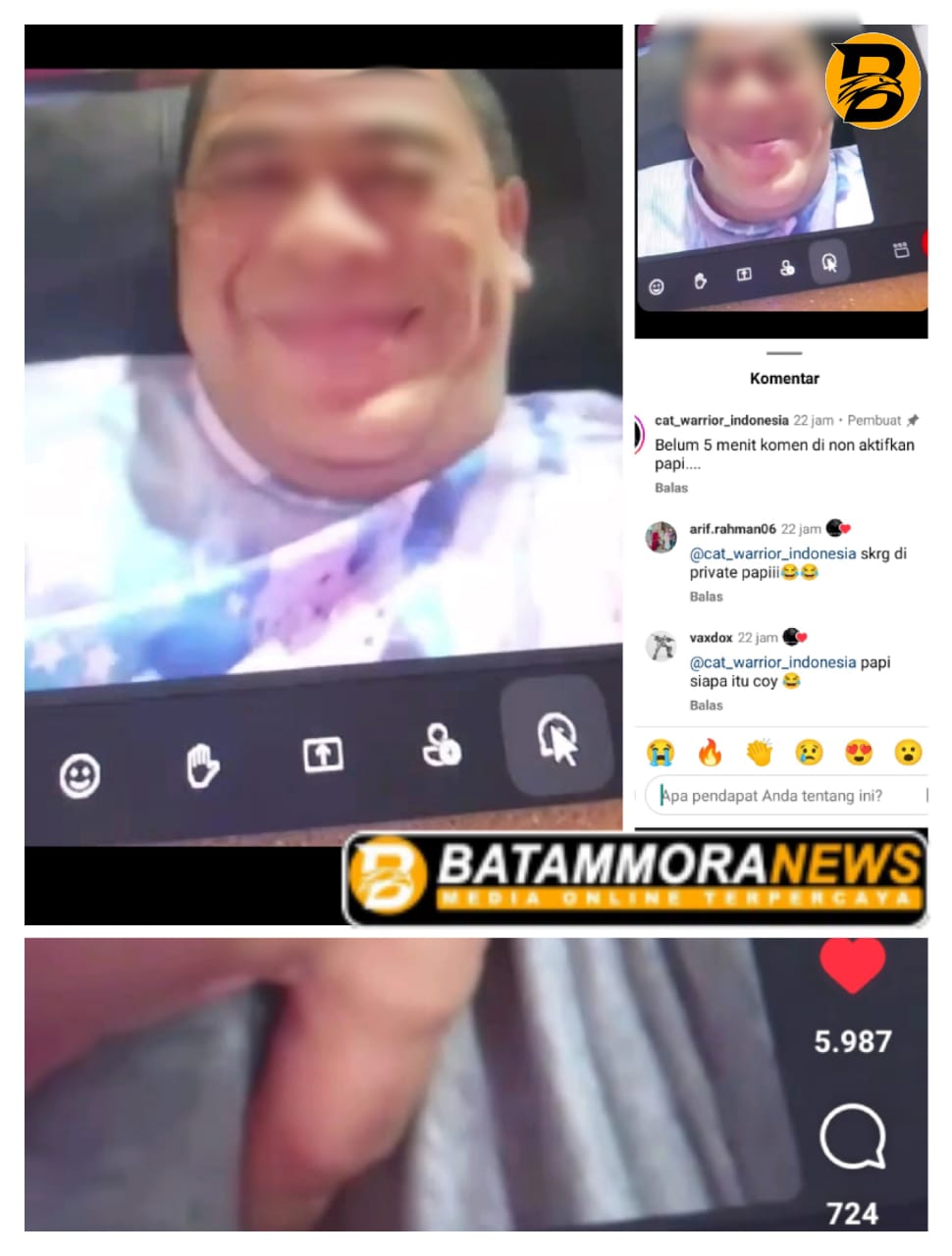 Batam – Masyarakat Kota Batam dihebohkan dengan beredarnya sebuah video call bermuatan asusila yang viral di media sosial (IG ) dan aplikasi pesan instan, Senin (29/12). Video berdurasi singkat tersebut diduga melibatkan seorang pria yang disebut-sebut mirip oknum Kepala Dinas Perindustrian dan Perdagangan (Disperindag) Pemerintah Kota Batam, berinisial GR.